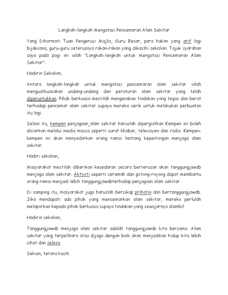 Ada pagi yang mulia ini saya akan menyampaikan sebuah syarahan yang bertajuk Faedah Bergotong-royong. Photo by robinson greig on unsplash. Hadirin sekalian Antara langkah-langkah untuk mengatasi pencemaran alam.